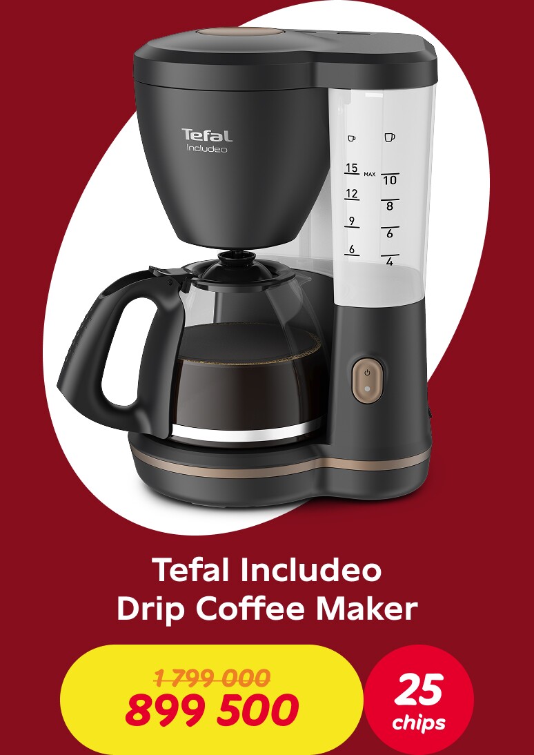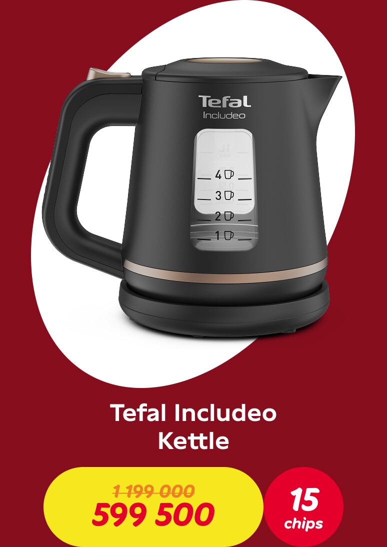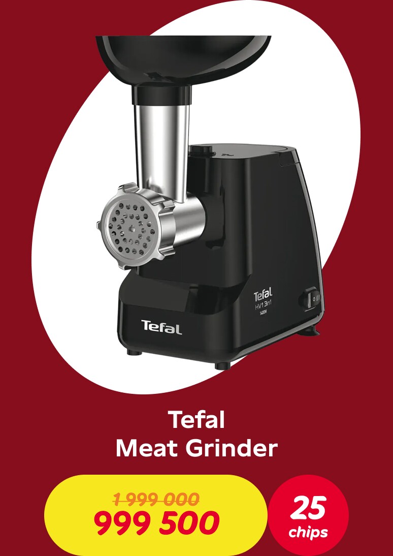 Make purchases and earn chips: for every 70,000 soums spent on a single receipt, you'll earn one chip. Once you've accumulated the required number of chips, you can exchange them for a discount voucher and receive a 50% discount on one product from the Tefal collection