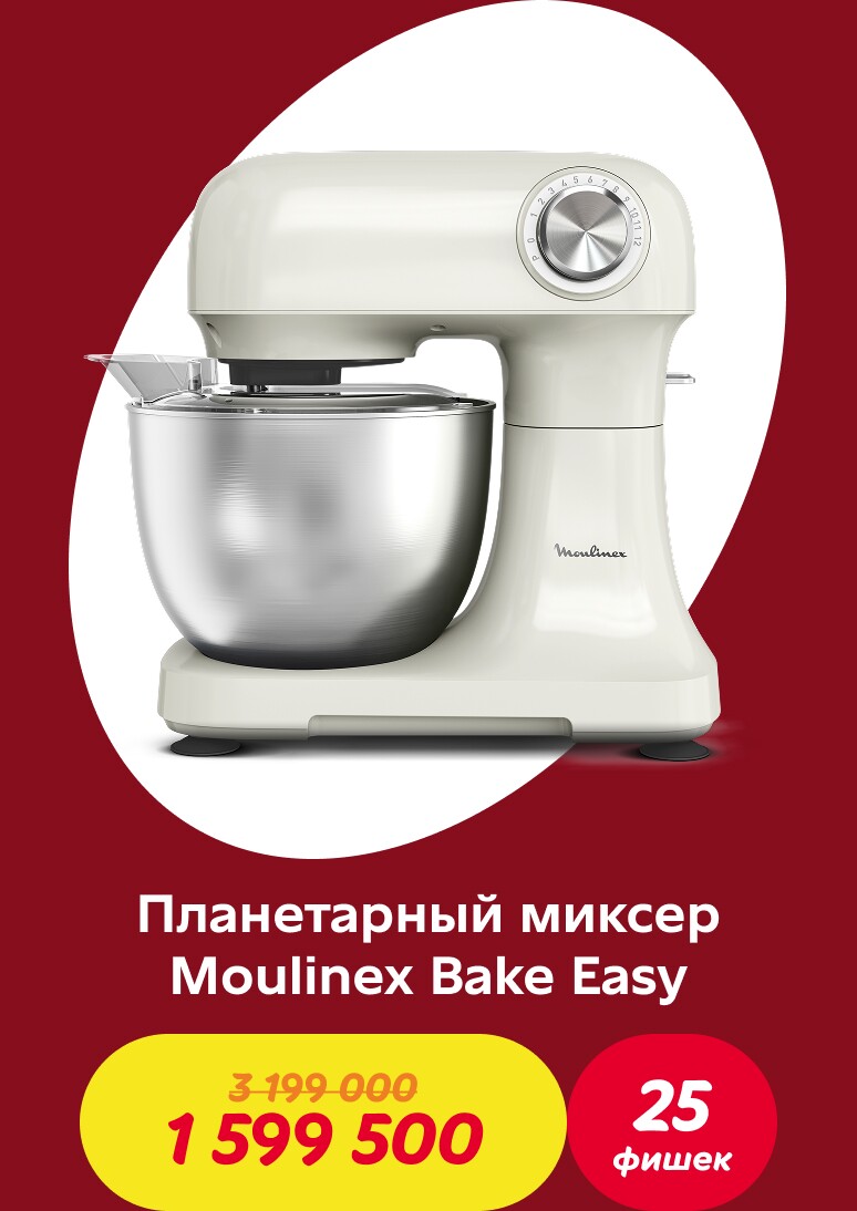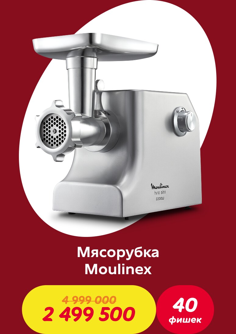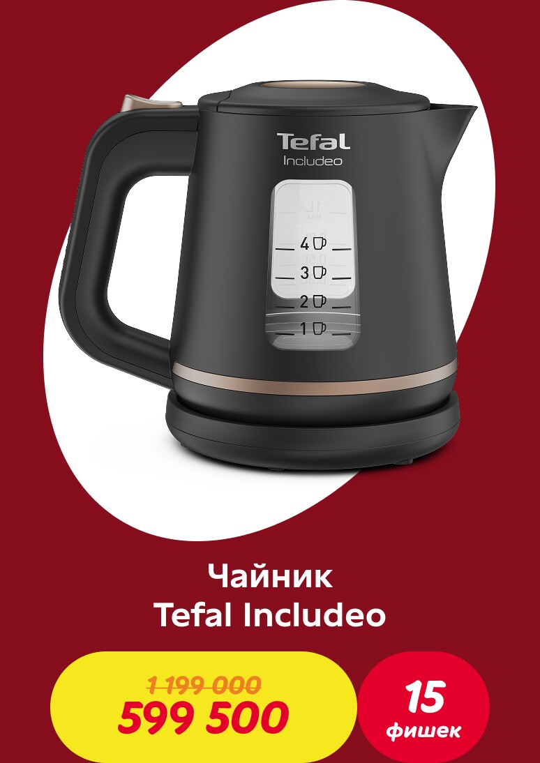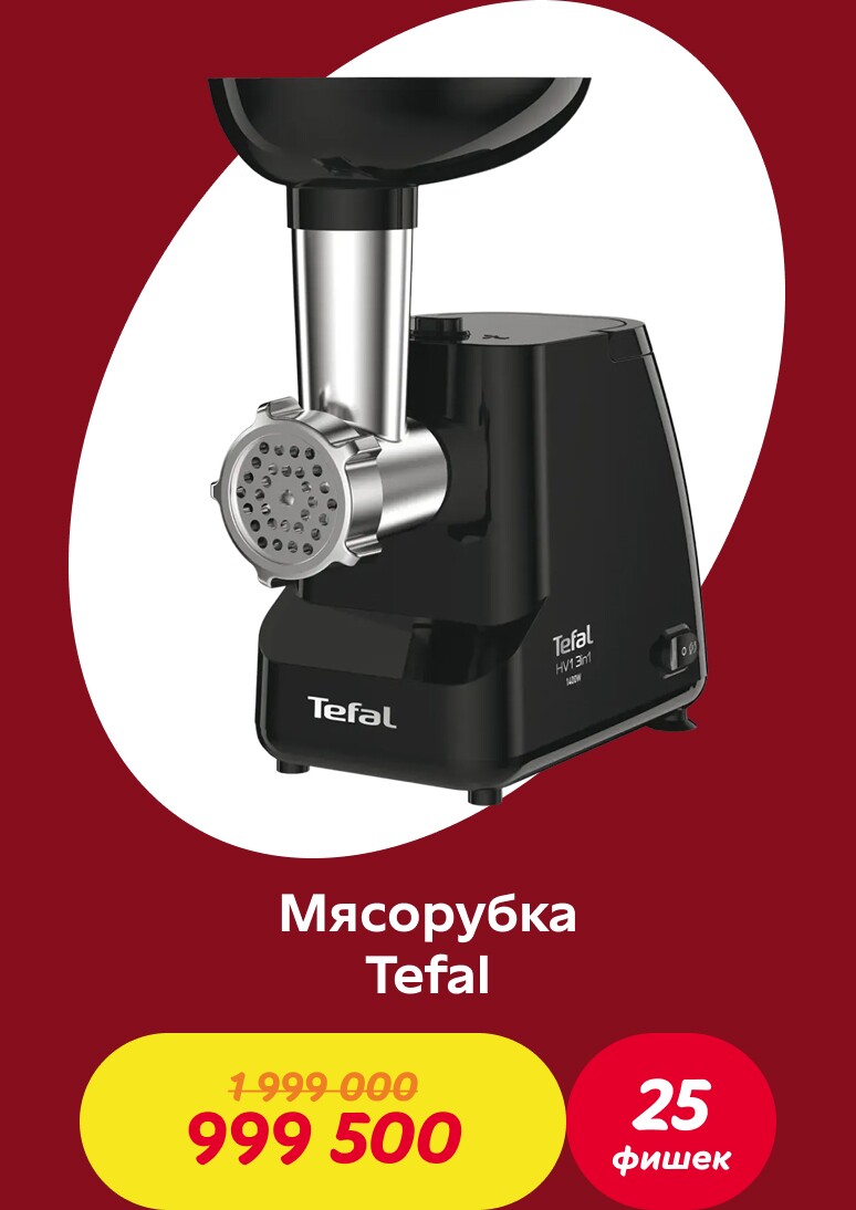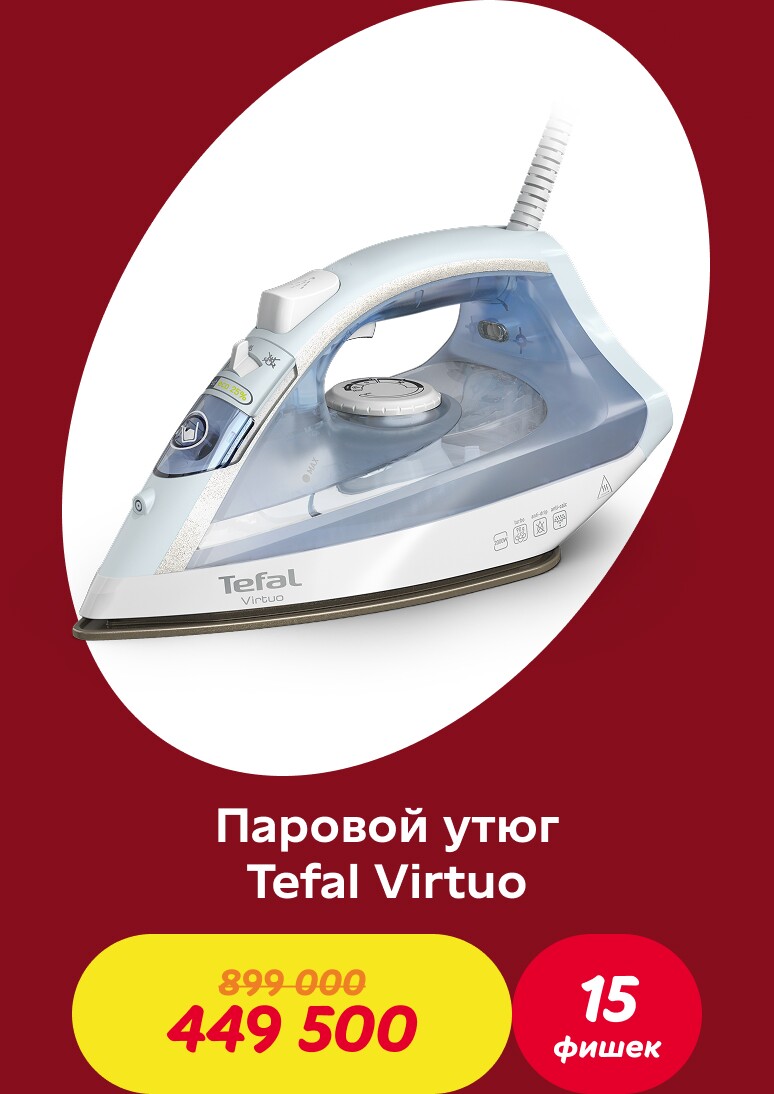 Совершайте покупки и получайте фишки: за каждые 70 000 сум в одном чеке начисляется одна фишка. Накопив необходимое количество фишек, вы можете обменять их на скидочный ваучер и получить скидку 50% на один из товаров коллекции Tefal
